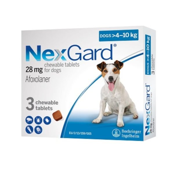NexGard Chewables are indicated for the treatment and prevention of flea infestations (Ctenocephalides felis) and the treatment and control of tick infestations, including black-legged tick (Ixodes scapularis), American dog tick (Dermacentor variabilis), Lone star tick (Amblyomma americanum), and brown dog tick (Rhipicephalus sanguineus). This product is suitable for dogs 8 weeks of age and older, weighing 10.1-24 lbs (4.1-10 kg).